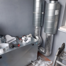 - Совмещение и подсоединение кухонной вытяжки в вентканал санузла.