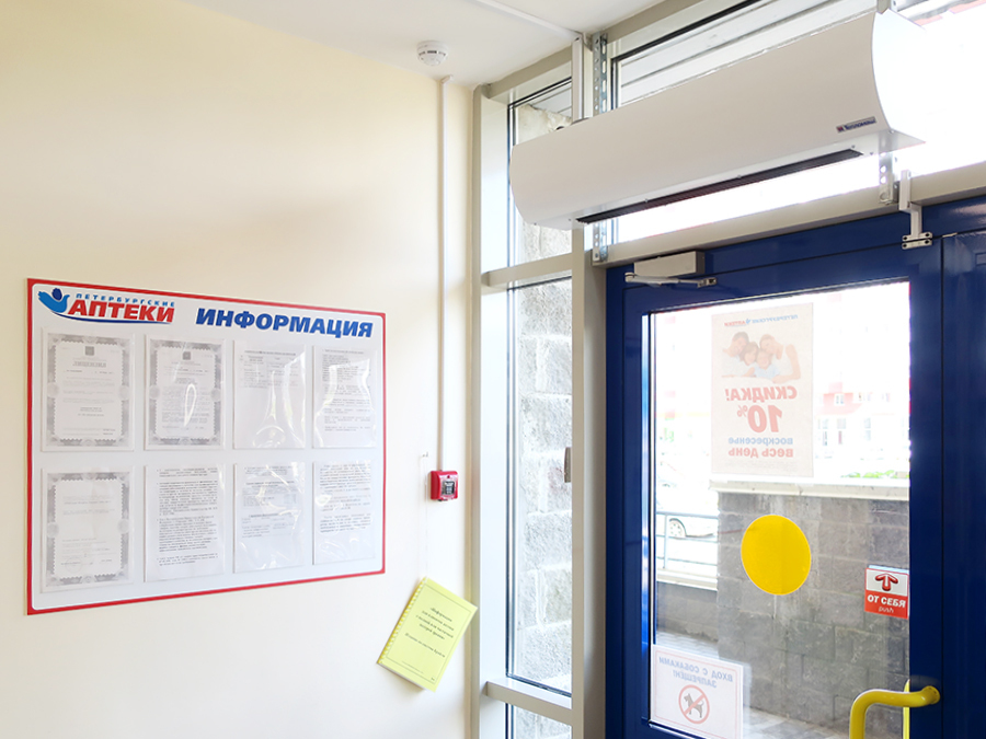 • При редком открывании дверей осушает и обогревает тамбур или вестибюль.