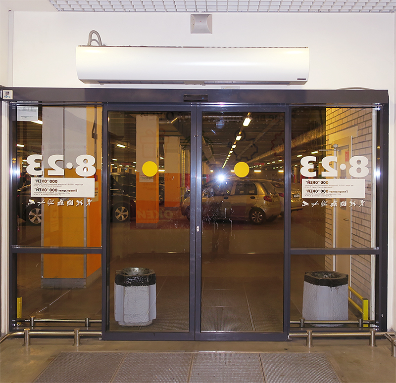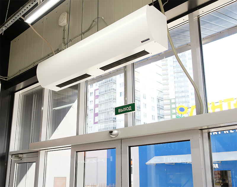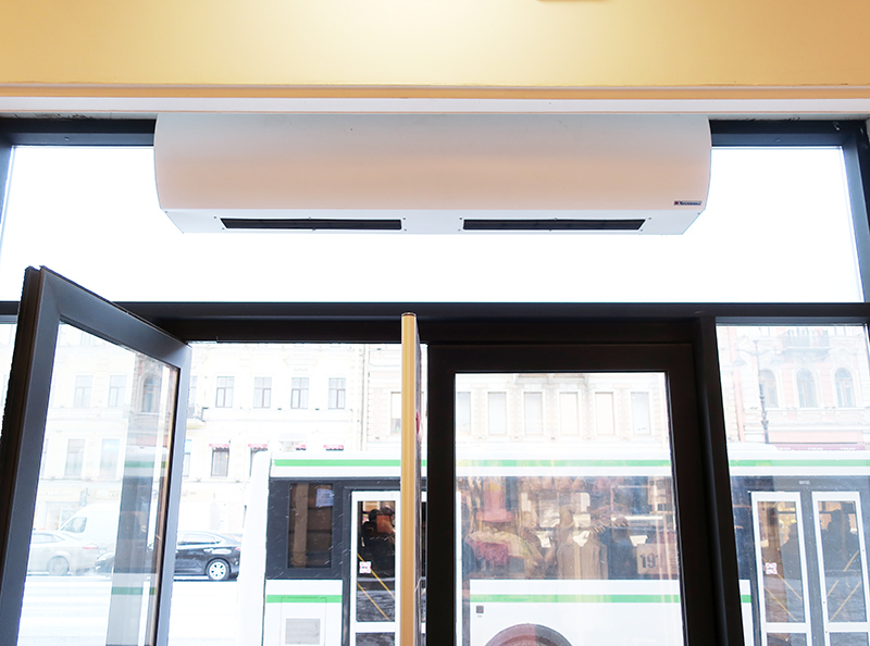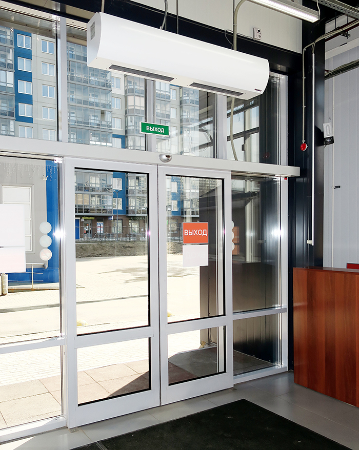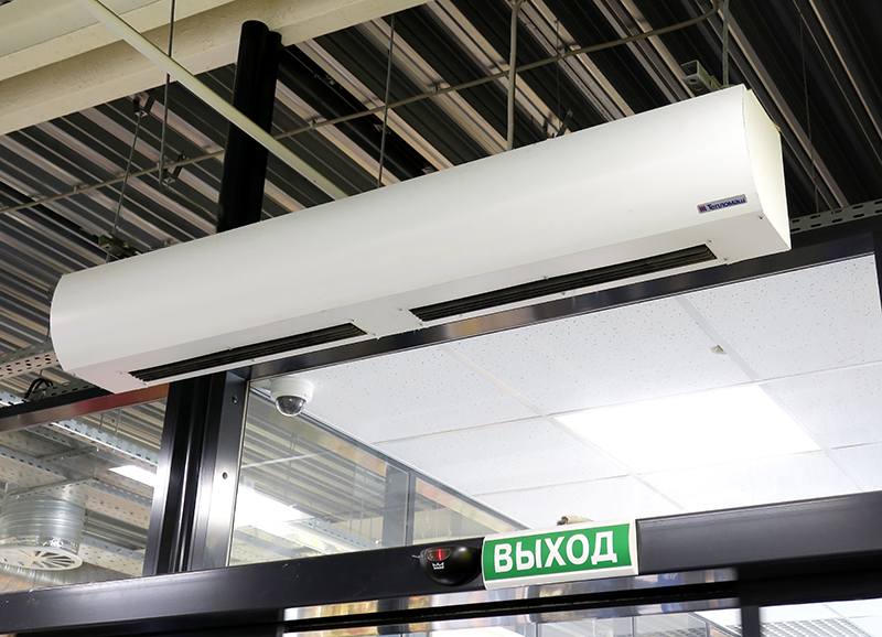 • При редком открывании дверей (ворот) осушает и обогревает тамбур/помещение.